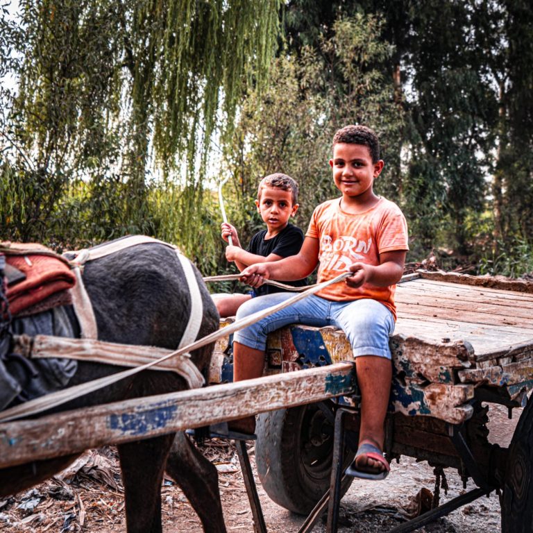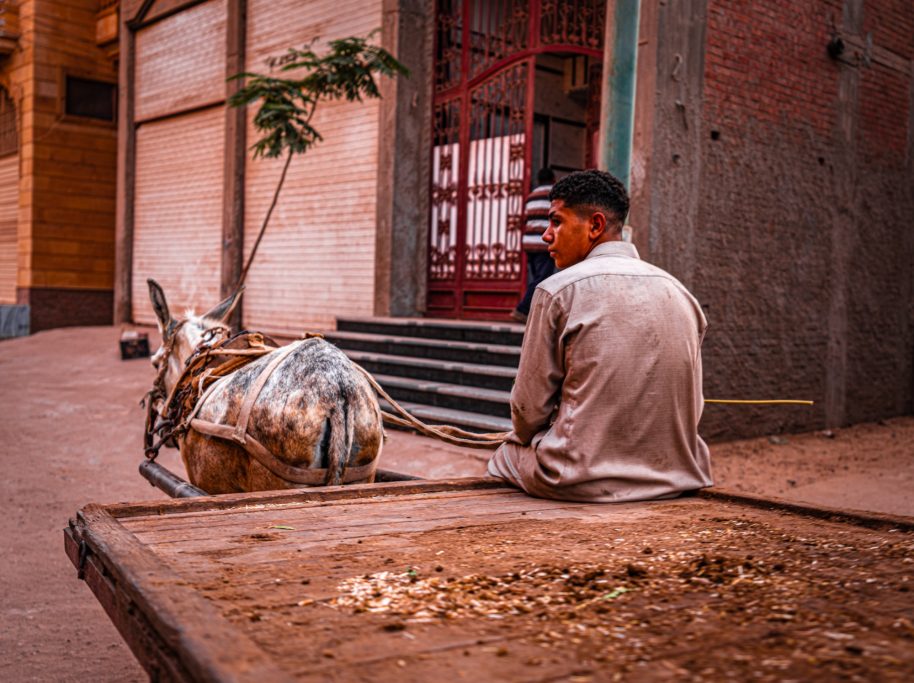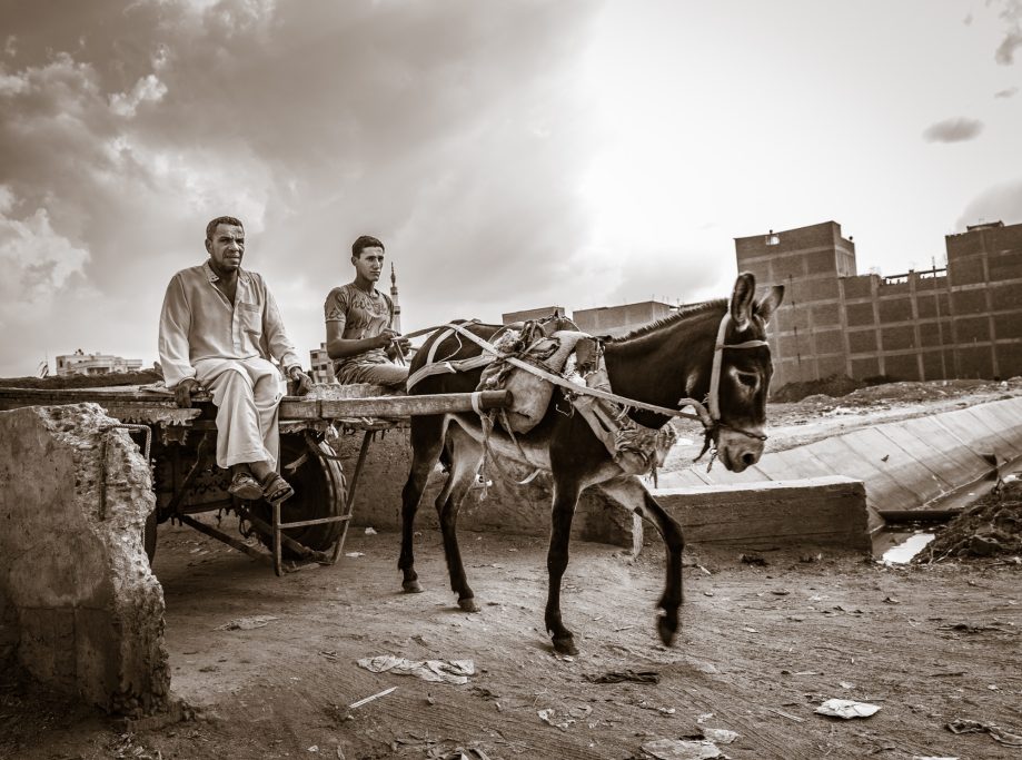 A dos d’âne ou à vélo, les transports qui semblent sortir d’une autre époque gardent leur place dans les rues parfois étouffantes du Caire. Cette coexistence entre tradition et modernité révèle une société profondément ancrée dans son histoire.