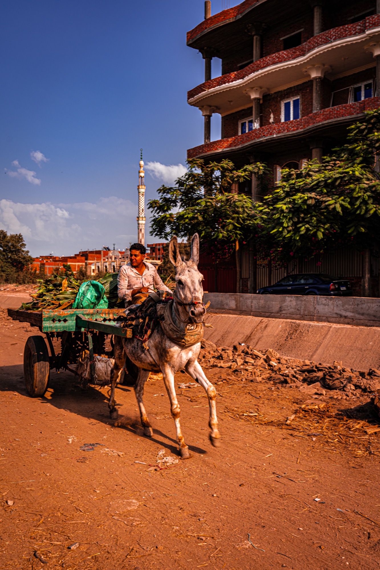 A dos d’âne ou à vélo, les transports qui semblent sortir d’une autre époque gardent leur place dans les rues parfois étouffantes du Caire. Cette coexistence entre tradition et modernité révèle une société profondément ancrée dans son histoire.