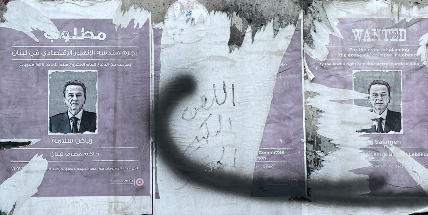 Affiches dénonçant Riad Salamé, ancien gouverneur de la Banque du Liban, Hamra, Beyrouth. Crédits: Victor Jardin